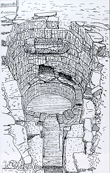 ![]() The well proved to have had a bath-like structure with a brick platform leading to a sluice in a grooved channel. One of the bricks sent to the British Museum for examination was returned with the verdict: not earlier than the middle of the 17th century, so here was a disappointment for the Mediaevalists. Then was found in the well-dressed stones, a wooden beam shaft much decayed, evidently part of a pump that had fitted into a sheath. So it would seem that some period in the late 17th or early 18th century there had been an attempt to control the natural spring of water with a pump and sluice gates. Possibly also an attempt to convert the area into a bath-house similar to those appearing at the time in watering places like Scarborough. Perhaps the family at the Hall had decided to develop a natural spring into a small health spot. The remains have been recovered with turf but the tiny bridge to assist cattle across a once-deep gully that fed into this area is still visible. |