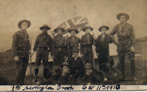 Ernest Vaux of Herrington Hall had served in the Boer War with Baden-Powell and on his return formed a Scout Troop as a pilot scheme in 1907. Meeting in Castle Street, Sunderland, many of the 400 members the following year were from the Waifs and Strays Rescue Agency and Vaux's own Troop were inspected by Baden-Powell. In 1908 B-P visited Sunderland and two people were paid to run a Scout troop as an experiment. 1st HerringtonThe 1st Herrington Troop was started in 1910 by PL Fred Duke and was at first confined to 8 Choir Boys who formed the "Ram Patrol" with Mr John Allen as ScoutMaster and Mr W Watchman as Assistant SM 1910-1912.