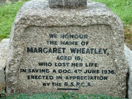 Highest award The story touched the heart of the whole country. The headstone of her grave was erected by the RSPCA. They also named their highest award, the Margaret Wheatley Cross, after her. Since then, her grave has been neglected and forgotten, and few people realise how the award got its name. "Margaret's family moved from the district shortly after her death, and the grave never has been properly cared for" Coun. Weightman told the "Journal" last night.