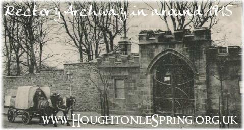 THE OLD RECTORY GATE Through the busy thoroughfare of the Broadway stream hundreds, perhaps thousands, of people a day on the many buses that serve Houghton-le-Spring. While waiting for passengers to board or disembark one can not be blamed for being tempted to take in the surrounds of St Michael & All Angels Church and its magnificent archway and colourful adornments, the four shields of Houghton. Copyright